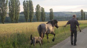 I still wonder about the hoofs. Do they wear off fast? Before yesterday dog Joep and I walked 22 miles with Luka. Till the end Luka stayed active, so the distance shouldn’t be a problem.