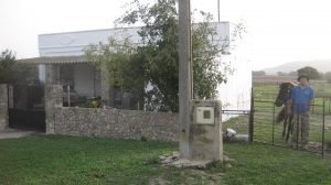 Where can I leave my sweeties this night? Almost 5 p.m.: a little white house with a horse behind it. My chance. I was waiting in front of the door. The keys still in the front door and that’s the way it should in el campo. Mother and daughter of about 14 years old open the door and start laughing right away. That gives hope. I told them quite a story in Spanish, the way I had been taught by my Spanish speaking daughter Lilian and by my peruvian daughter in law Gigi. I was welcome but first I would have to wait for the marino (husband) to come home at around 8. I answered I couldn’t wait so long and I would first try elsewhere. O.k., but I was welcome to return. This is how I expected my trip to be. Michiel and Jack urged me to look for a place to stay and not to depend on them. Both brothers intended to help me on my way my first week, but then they would return home 3000 km. with my car with trailer. In that first week I had to be North of Sevilla, from where the pelgrims way starts North to Santiago. So I went on to another, little, white shag. A friendly man with thoughtfull eyes offered me his very poor sheepfield for Leon. Not one leaf of grass, 20 sheep and only two lambs. The rest of the ewes probably didn’t get pregnant because of hunger and misery. I acceped the field right away because there was water. And for sure Leon will not get laminitis at his hoofs because therefore a horse needs a lush grass field. This morning Leon had finished the rest of his concentrate, so now he must be able to endure a day. During the day I also give him the the opportunity to eat a bit of grass. Tosca enjoys herself by chasing rabits. Upon arriving the patron and I had a brief chat about both nuestre obechas(our sheep). That gave us something in common. He didn’t like the economic/ social live in Spain. No jobs, bad politics. He said he was red. So am I, I thought, but because of the sun. Soon after I am picked up by Jack and Michiel in the car and we are heading for a camping. Closed. How can we turn the car with trailer here in this narrow steep hillside street? Miguel Bacha leaves his cabin to help us. Go and have diner in the village (Medina Sidonia) and tell them that I advised you that restaurant. And so we did.(Picture): a relative of him. I still asked if they wouln’t call the guardia civil if we mentioned his name, but he didn’t get the joke. We stayed overnight in the recommended place, Tosca in the trailer, right in front of the hotel. Only hoping she will not bark. Jack and Michiel had met the same policemen they had seen yesterday. The policemen waved friendly. I beleave we are getting vips here in this region. This evening our hotel restaurant was deprived of electricity twice. When the light got on we were still sitting in semi dark, because over our table the lamp didn’t burn. But who cares about a lamp as long as we get our meal. I believe I start loving Spain. And the fun has just begun. This is (day) number ten and we start (not) over again, roll me over, lay me down and do it again.